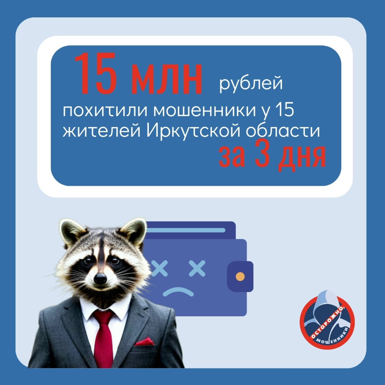 15 миллионов рублей за три дня перевели жители Приангарья мошенникам. Об этом сообщает информационное агентство «ТК Город» со ссылкой на пресс-службу ГУ МВД по Иркутской области.