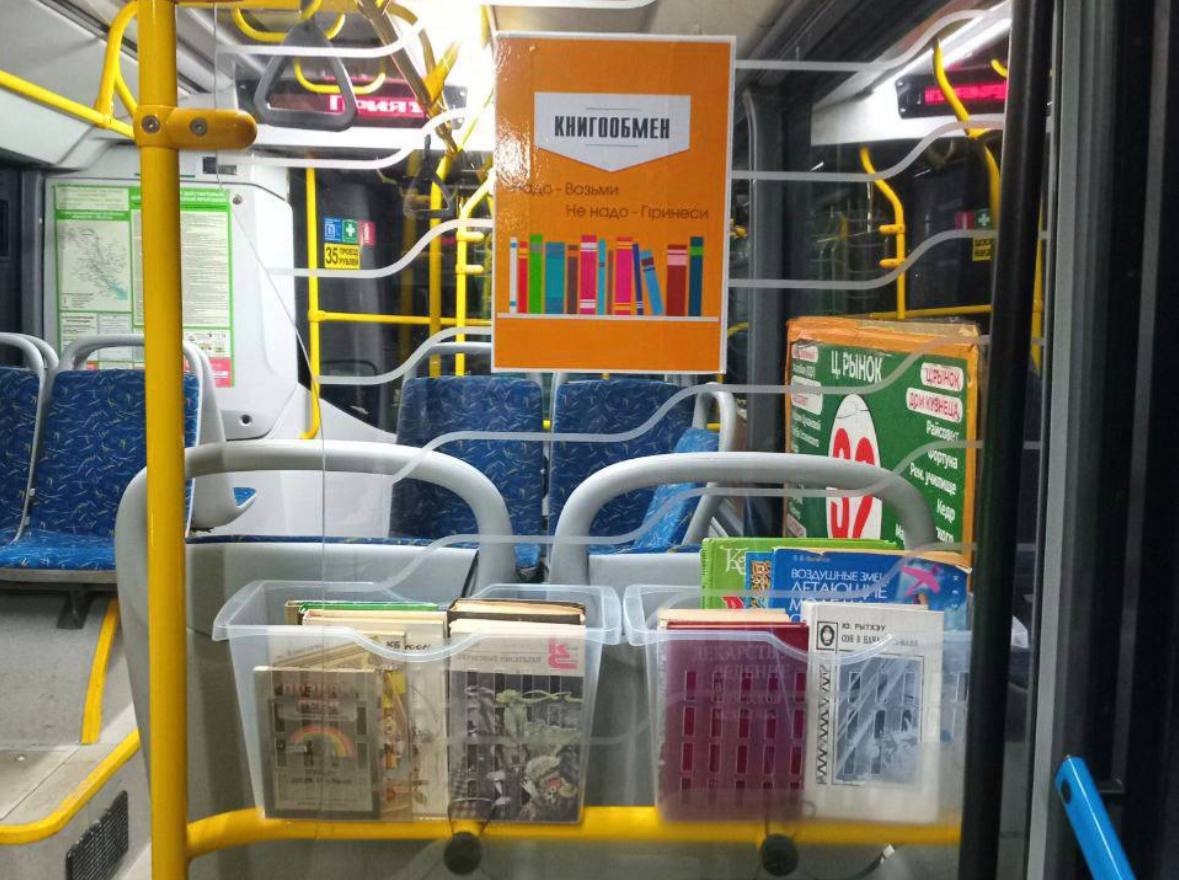 Пассажиры маршрута №15 в Иркутске теперь могут скоротать время в дороге за чтением книг. Водитель МУП «Иркутскавтотранс» Анна Богданова организовала в салоне своего автобуса точку буккроссинга – бесплатного книгообмена.