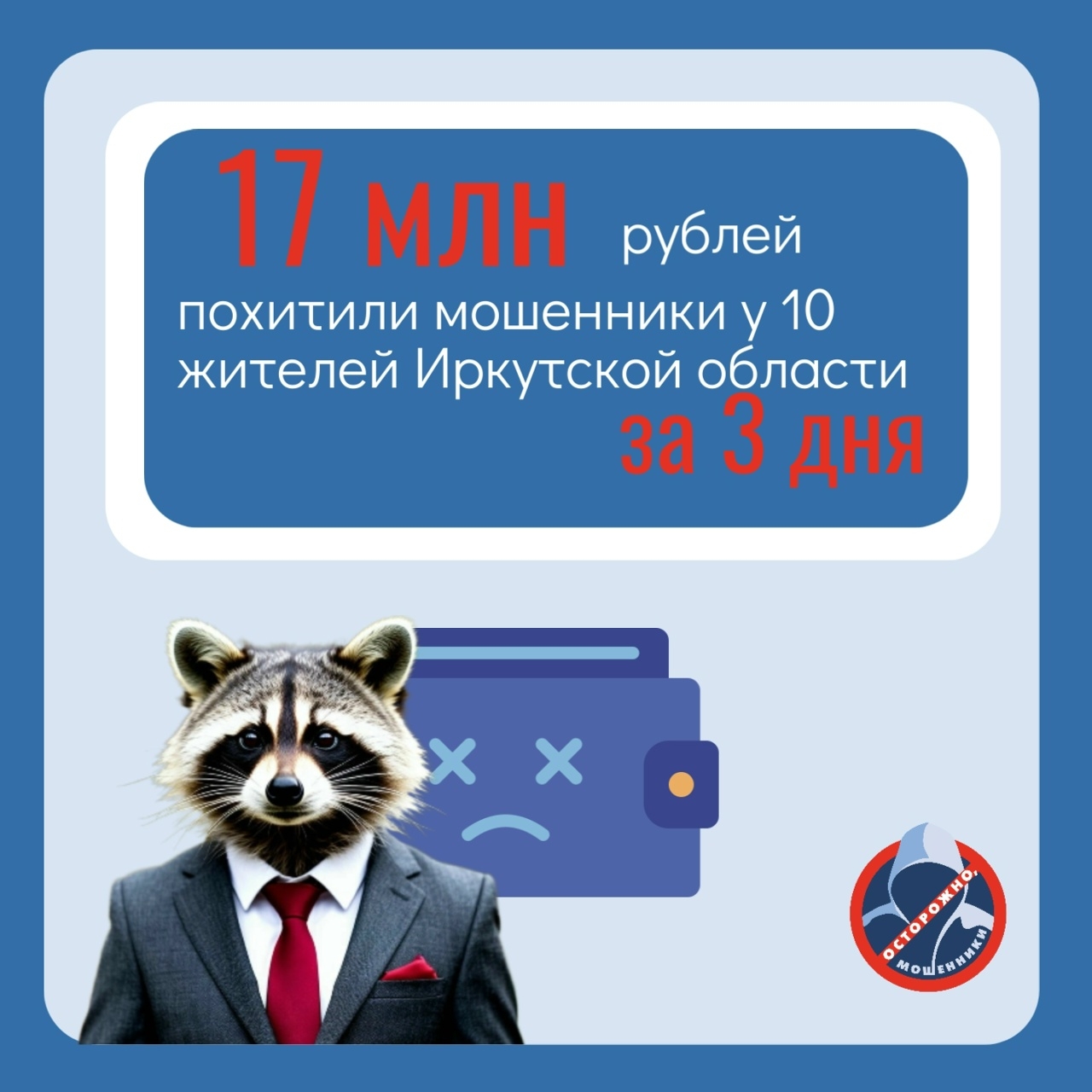 Жители Приангарья за три дня потеряли 17 миллионов рублей из-за мошенников. Об этом сообщает ИА «ТК Город» со ссылкой на пресс-службу ГУ МВД по Иркутской области.