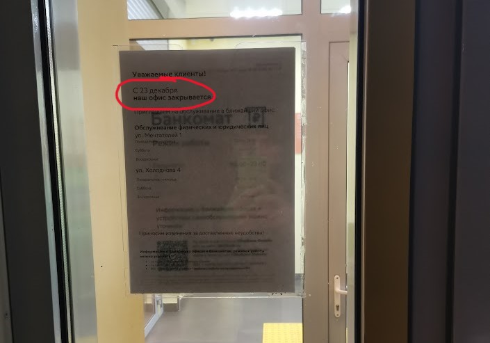 В объявлении также указывается, что клиенты могут обращаться в ближайшие офисы «Сбербанка», которые расположены в жилом районе Энергетик.