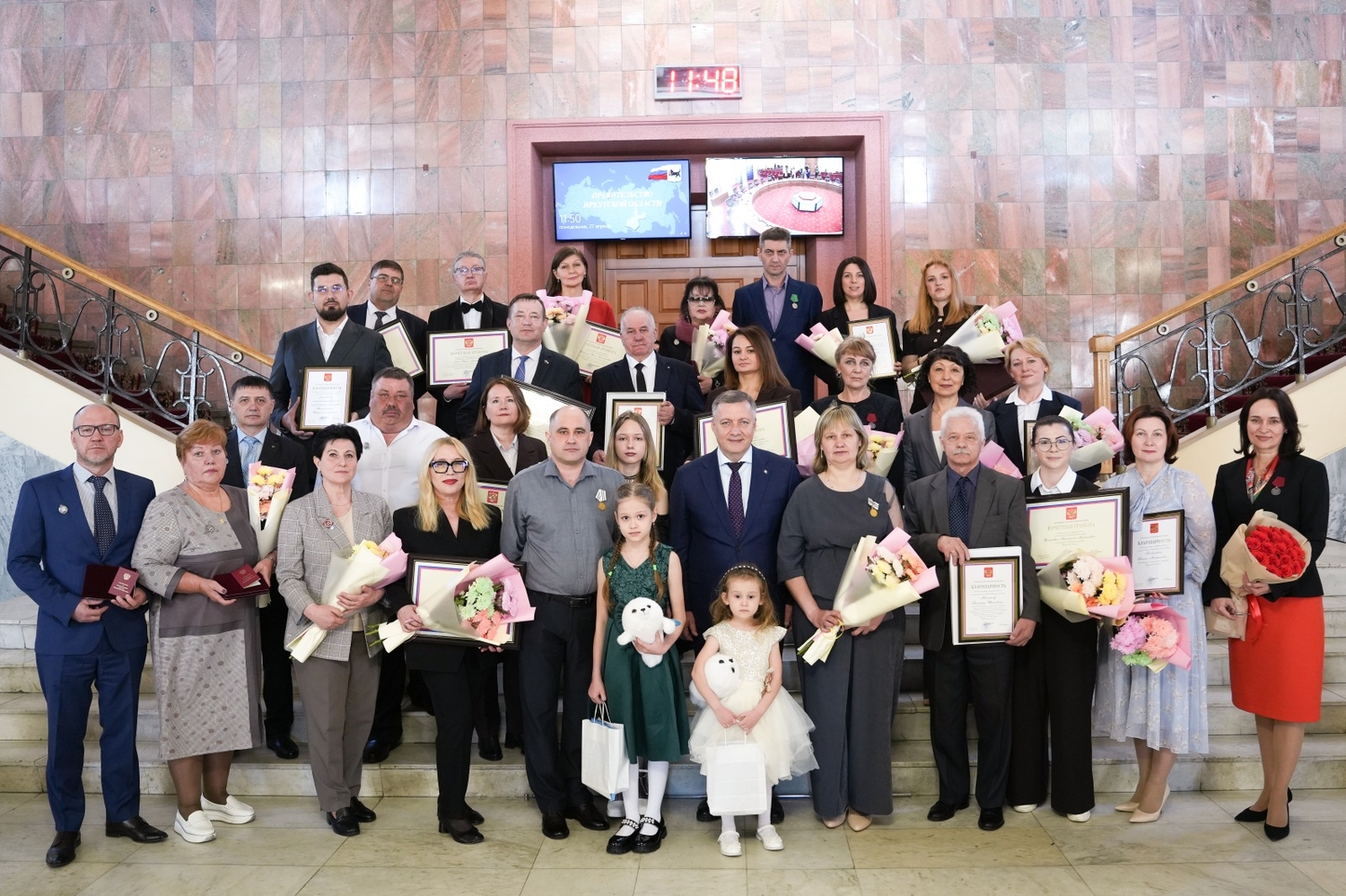 По поручению Президента России Владимира Путина и от его имени губернатор Иркутской области Игорь Кобзев вручил государственные награды жителям Приангарья. Среди них — медали ордена «За заслуги перед Отечеством» II степени, медаль «За развитие железных дорог», медали ордена «Родительская слава», знак отличия «За безупречную службу» XX лет, нагрудные знаки к почётным званиям «Заслуженный архитектор Российской Федерации», «Заслуженный врач Российской Федерации», «Заслуженный работник пищевой индустрии Российской Федерации», «Заслуженный работник сельского хозяйства Российской Федерации», а также Почётные грамоты и благодарности Президента РФ.