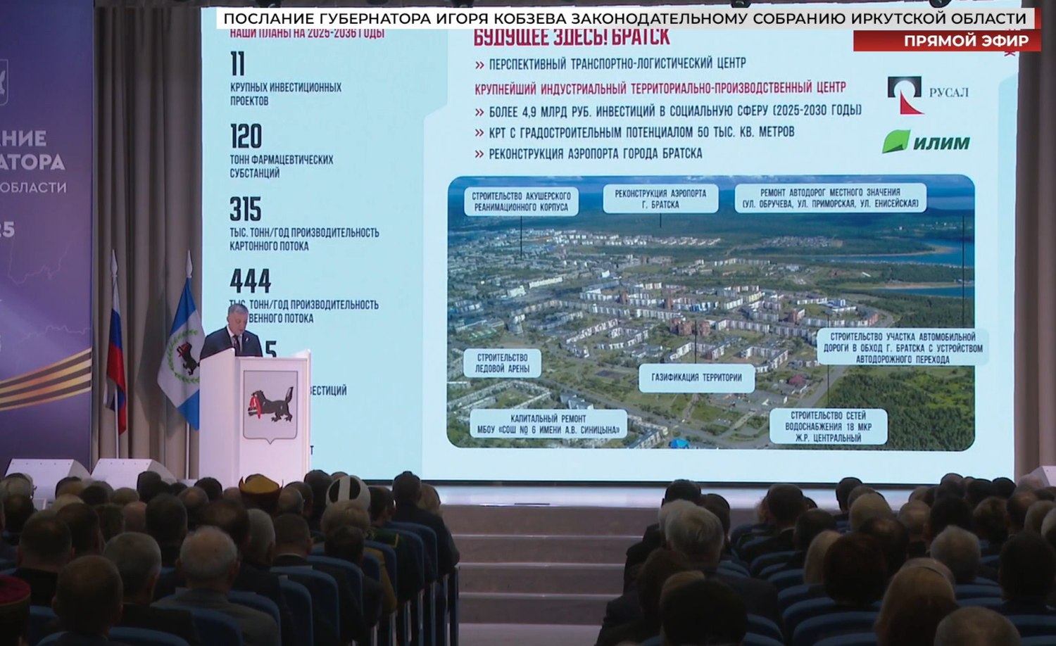 Братск в ближайшее десятилетие станет «крупнейшим индустриальным центром». Об этом во время своего ежегодного послания депутатам Законодательного собрания Иркутской области 25 апреля рассказал губернатор Приангарья Игорь Кобзев, сообщает информационное агентство «ТК Город».