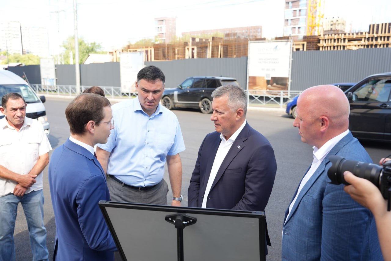 На улице Российской в настоящее время идет замена сетей тепло- и водоснабжения. Работы завершатся до конца месяца, после чего начнется обновление дорожного покрытия, тротуаров, бордюров, освещения и ливневой канализации, а также обустройство газонов и нанесение разметки. Участок протяженностью 740 метров будет готов к октябрю. Губернатор особо отметил необходимость завершения работ у расположенной на улице школы до начала учебного года.