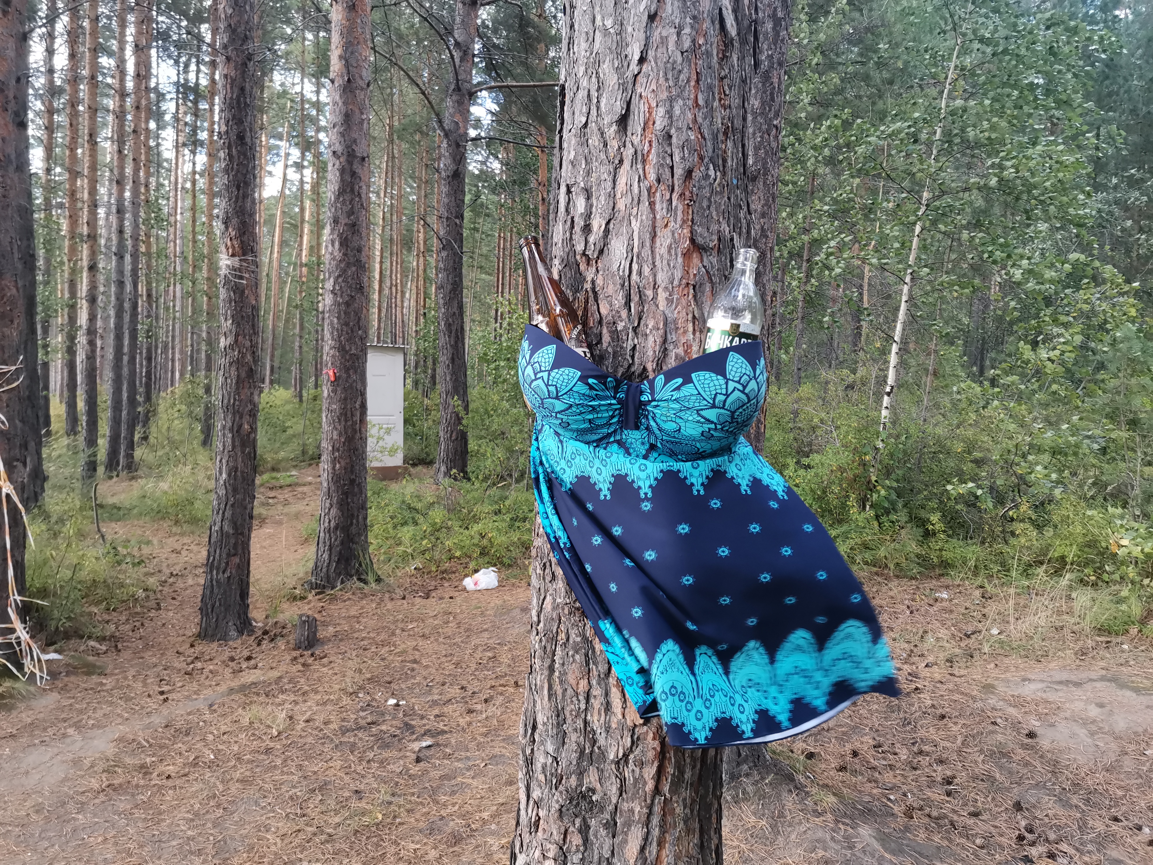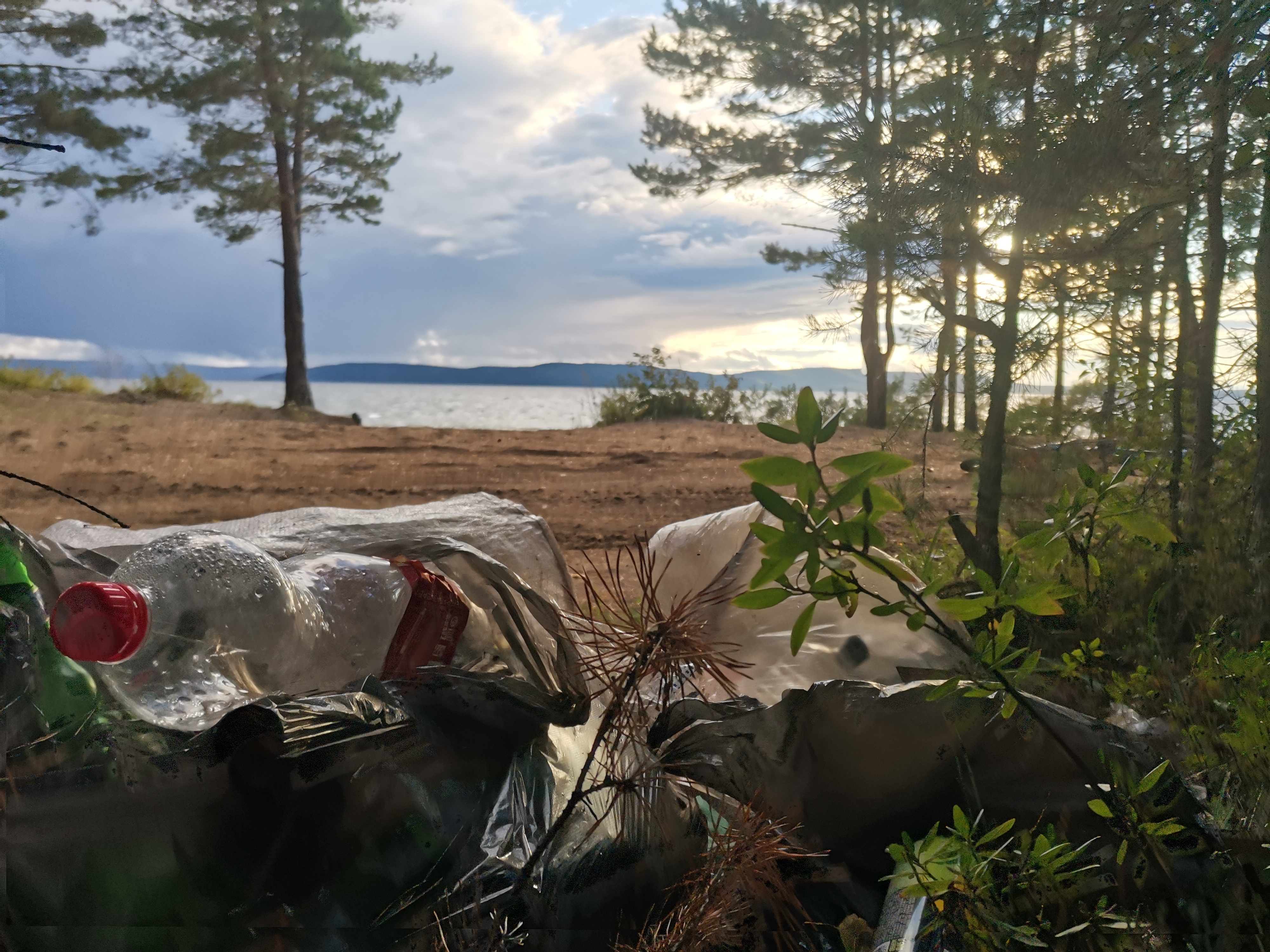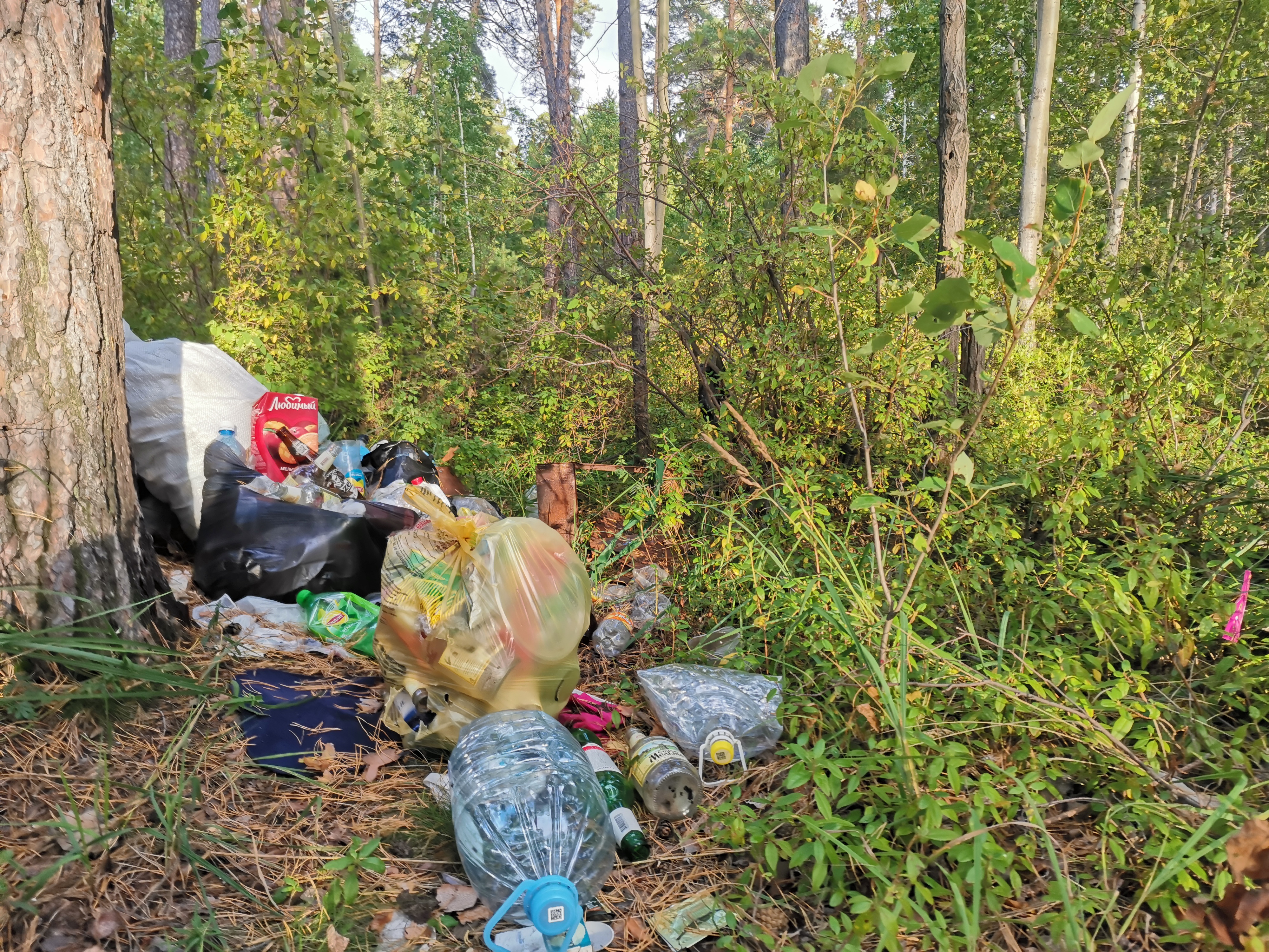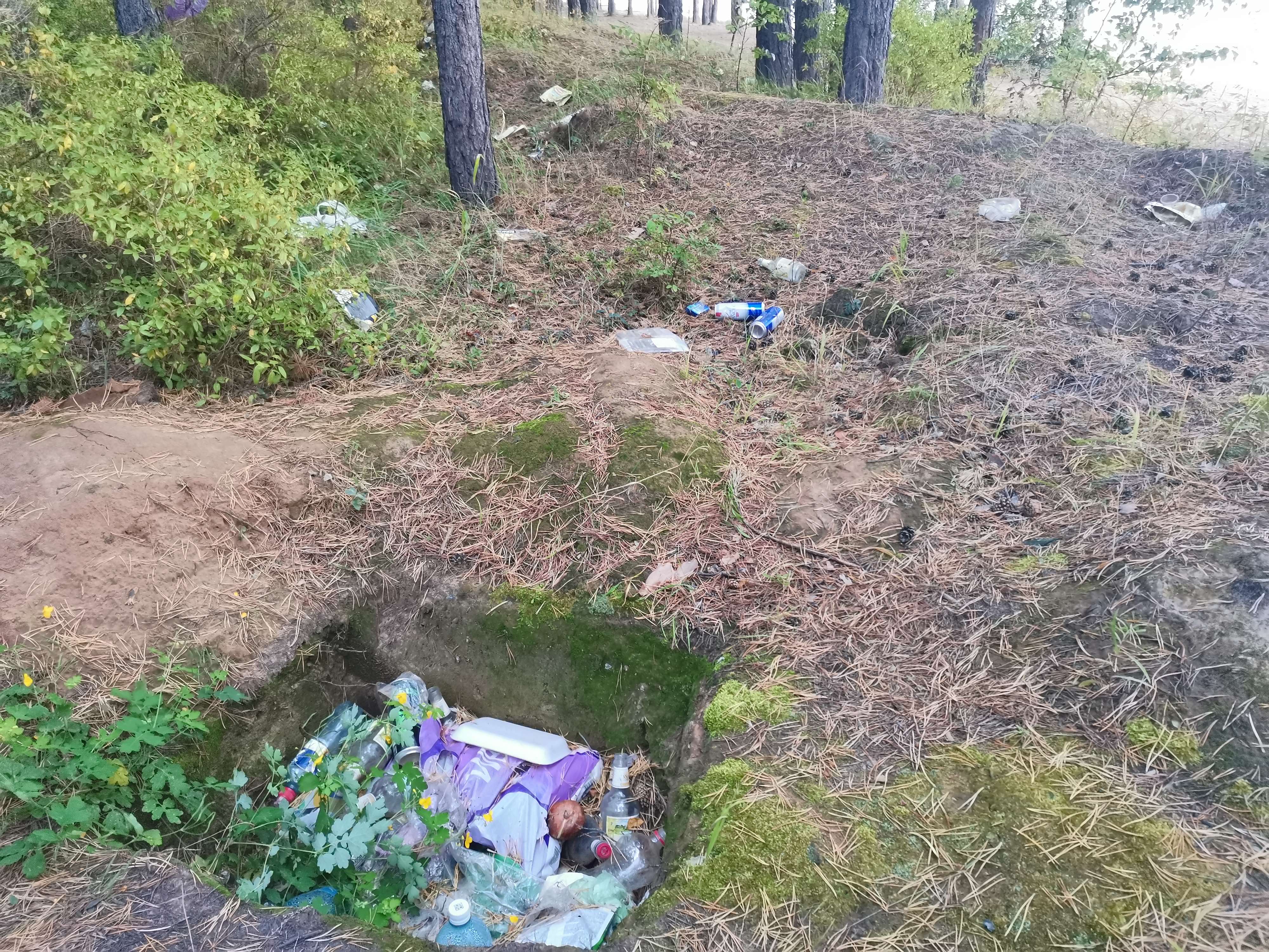 На фотографиях видно, что лесополоса возле песчаного берега захламлена бытовыми отходами. В основном стеклянными и пластиковыми бутылками, алюминиевыми банками, упаковками от продуктов.