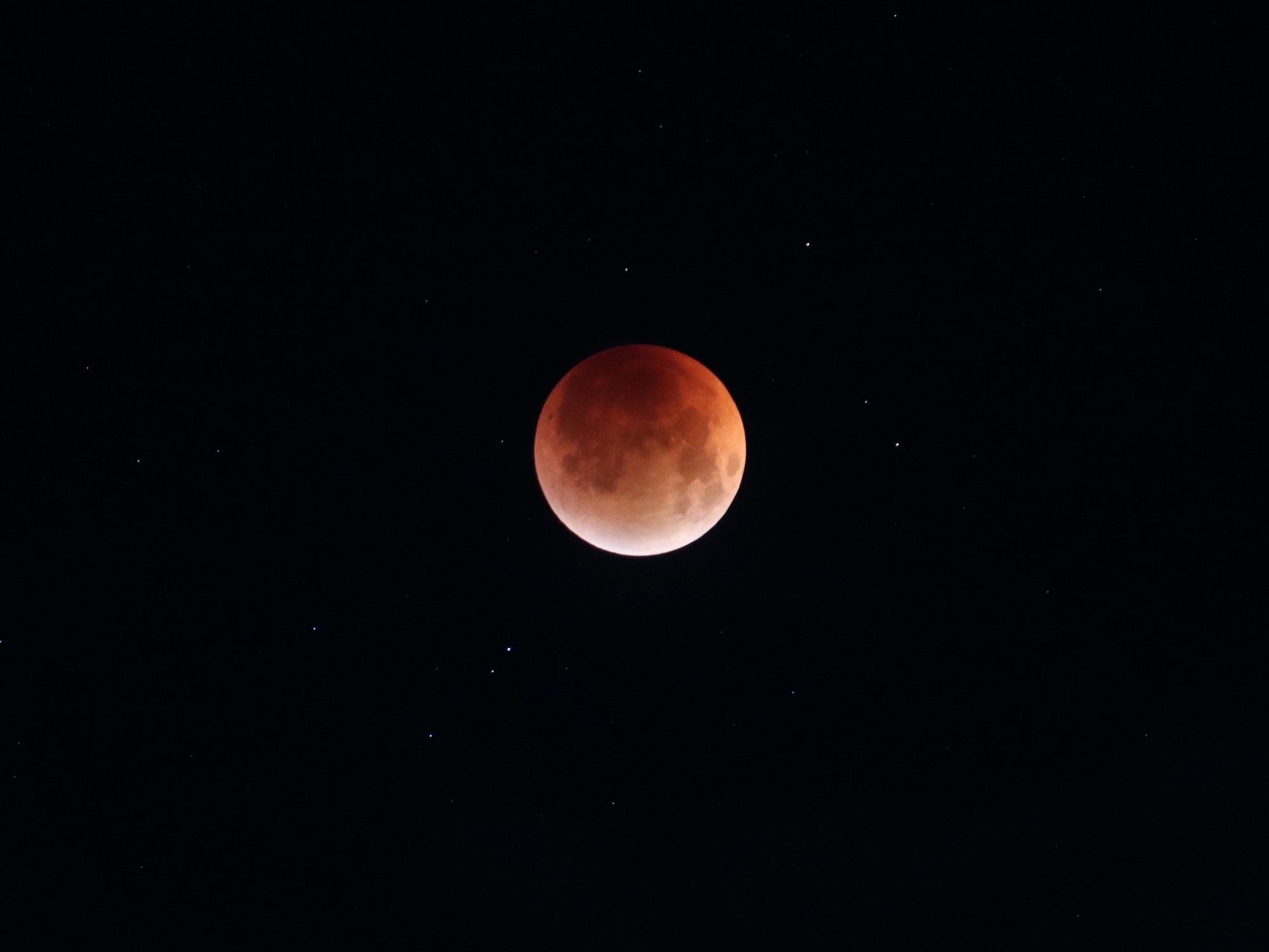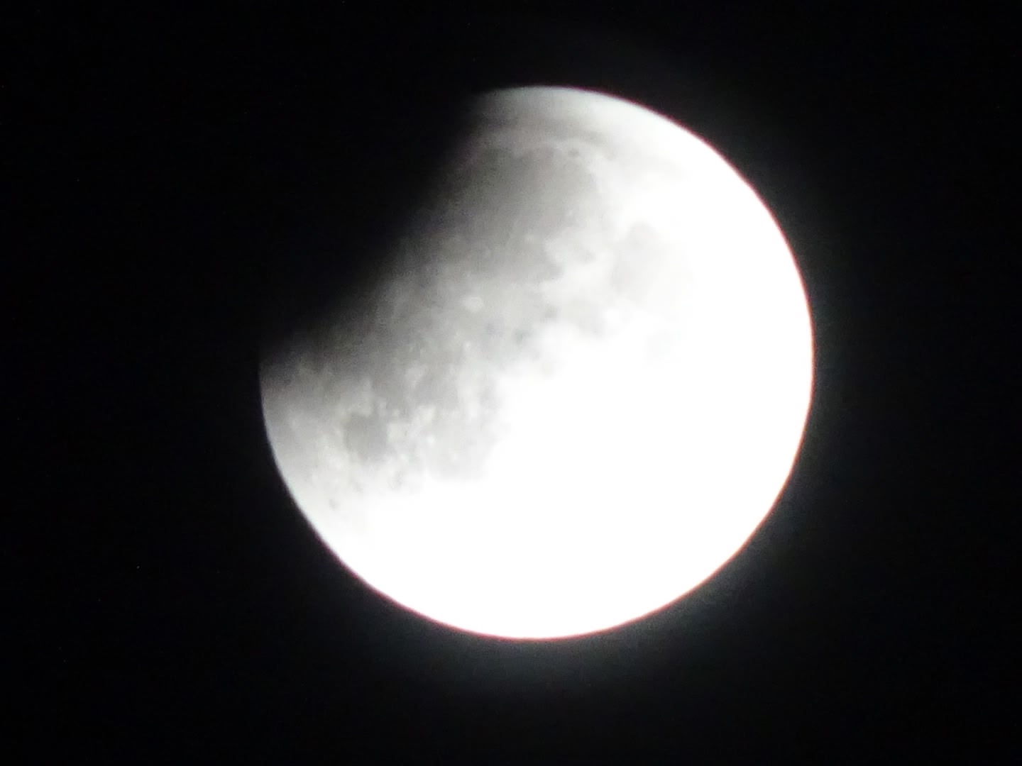 Полное лунное затмение началось в 01:30. Больше часа Луна оставалась в тени. Во время затмения приобретает красный оттенок — из-за этого явление также называют «Кровавая Луна». Около трех часов ночи Луна постепенно начала выходить из тени.