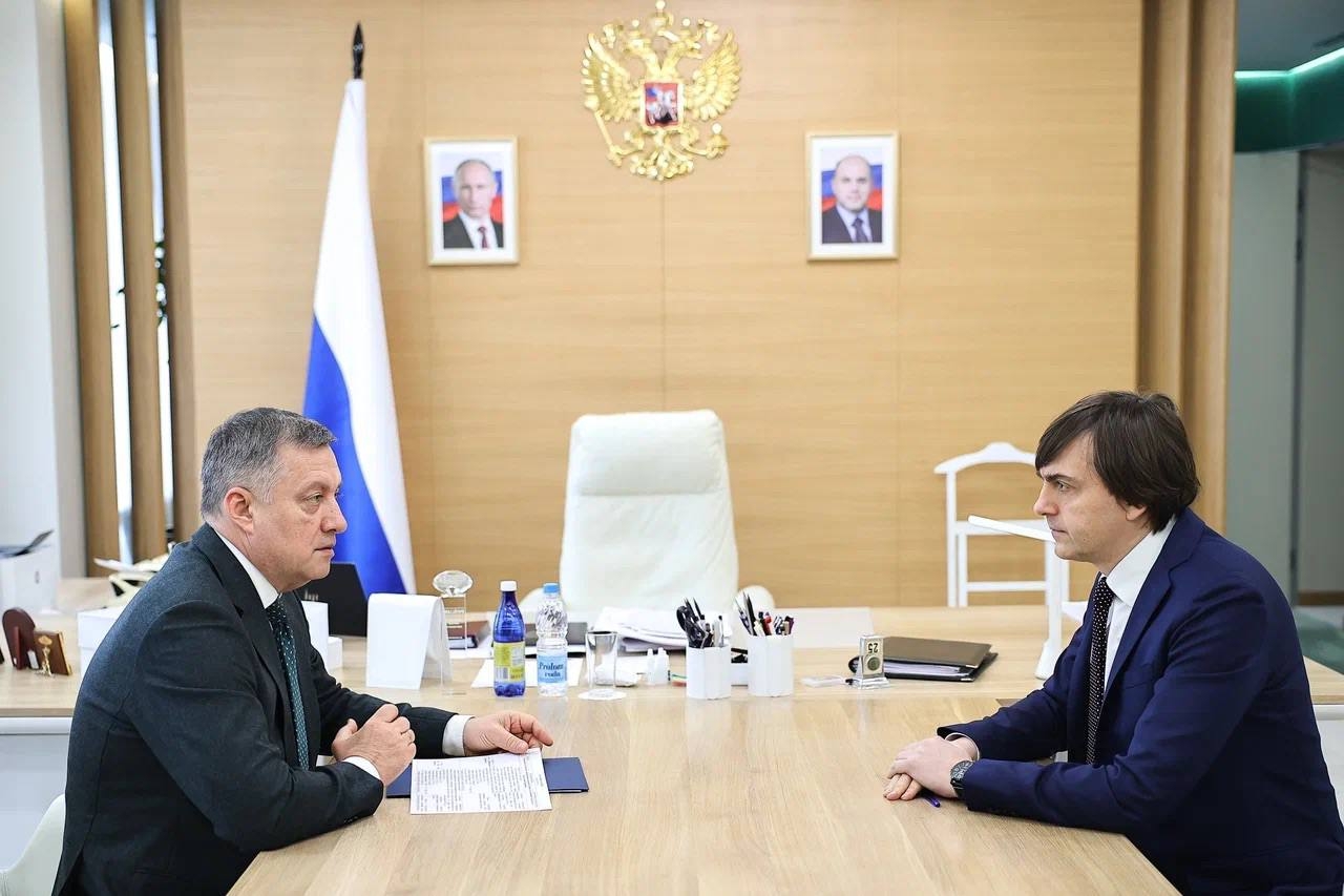 Вопросы строительства и капитального ремонта объектов образования обсудили во время рабочей встречи в Москве глава Приангарья Игорь Кобзев и министр просвещения России Сергей Кравцов. Об этом сообщает информационное агентство «ТК Город» со ссылкой на правительство Иркутской области.