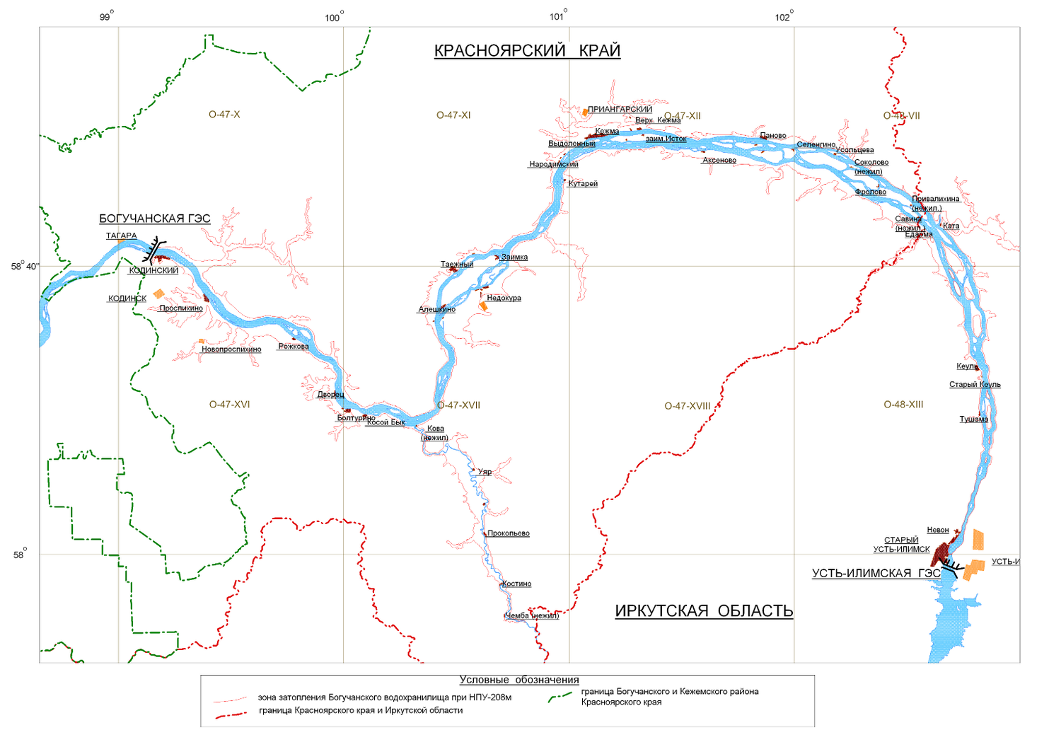 Расчетная протяженность нового водохранилища составит 107 км, площадь затопления - 6,5 тысяч гектаров на территории Богучанского и Кежемского районов Красноярского края. Площадь зеркала водохранилища при нормальном подпорном уровне составит около 240 тысяч кв.км.