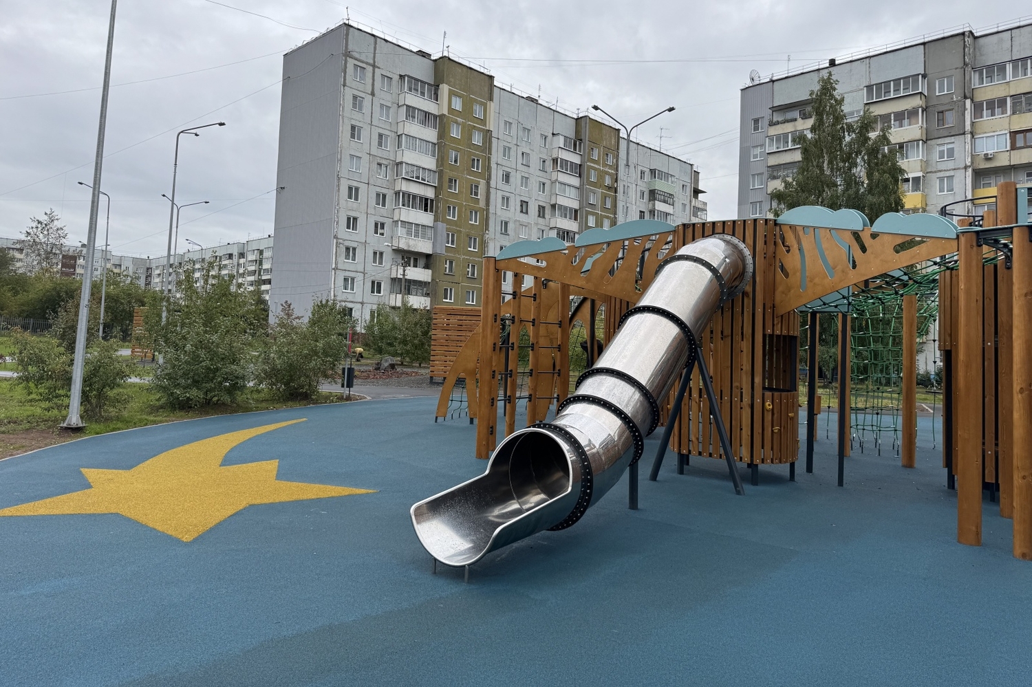 две детские площадки с покрытием из резиновой крошки,