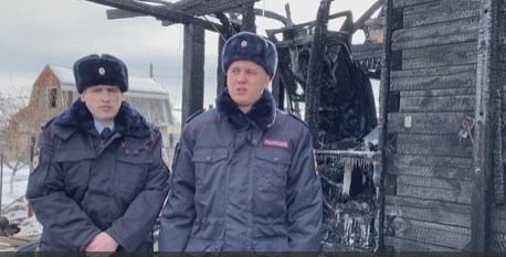Сотрудники отдела полиции Борис Самодуров и участковый уполномоченный полиции Андрей Толмачев, находясь на маршруте патрулирования, спасли из огня пенсионерку и помогли эвакуировать имущество из горящего дома.
