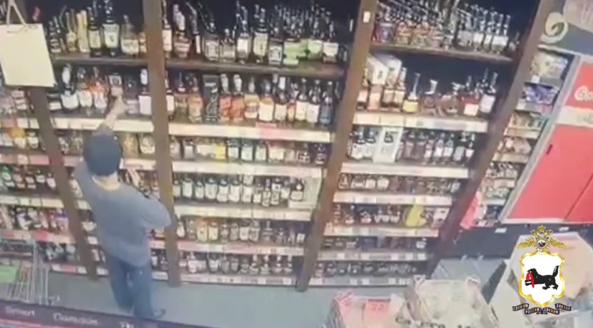 Записи с камер видеонаблюдения зафиксировали, как подозреваемый берет алкоголь с прилавка и, минуя кассу, выбегает на улицу.