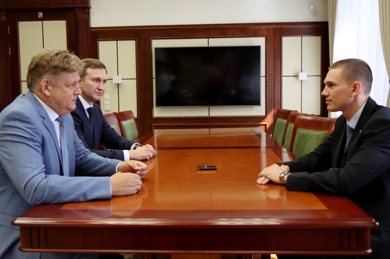 Полномочный представитель Президента Российской Федерации в Сибирском федеральном округе Анатолий Серышев провел рабочую встречу с участником программы «Время героев» майором Егором Захаровым.