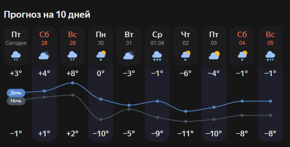 Скриншот с сайта "Яндекс.Погода"
