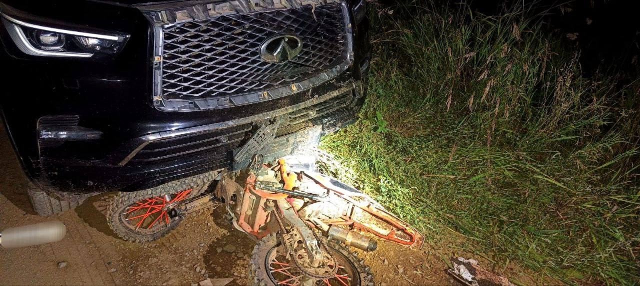 В ночь с субботы на воскресенье на дороге к садоводству «Сибиряк» в Братске произошло серьезное дорожное происшествие. Автомобиль INFINITI QX 80 столкнулся с питбайком KOYO, за рулём которого находился 16-летний подросток.