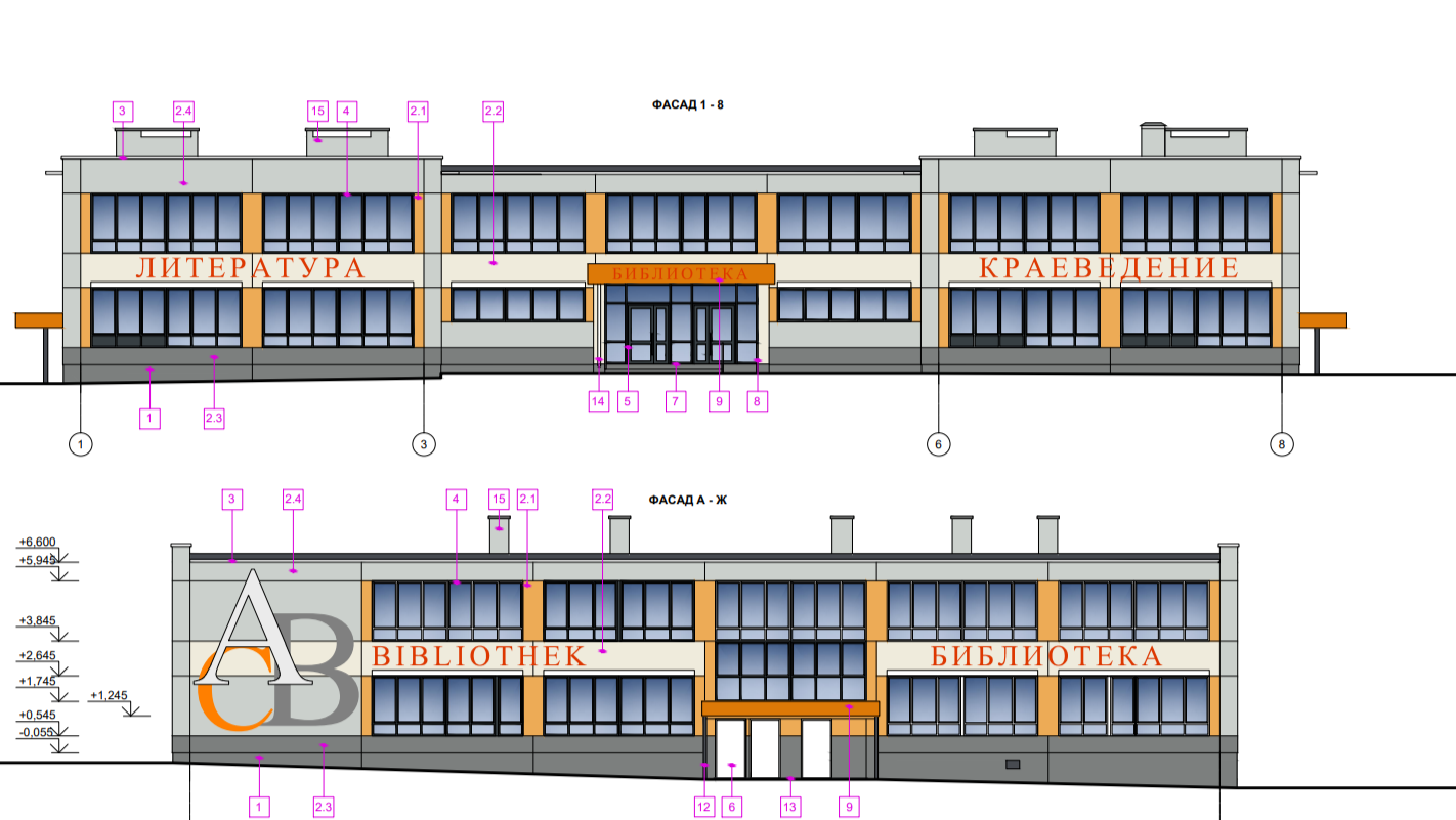Изображение - скриншот из проекта капитального ремонта библиотеки (архитектурное решение по фасада здания)