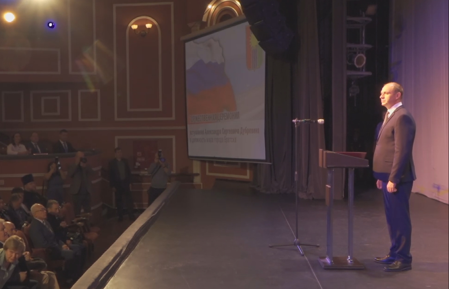 Александр Дубровин официально вступил в должность мэра Братска. Он получил удостоверение главы города и принес присягу. Инаугурация прошла 19 сентября в местном Драматическом театре. Об этом сообщает информационное агентство «ТК Город».
