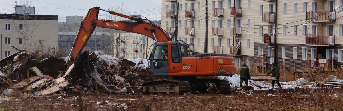 В 26-м микрорайоне Братска скоро исчезнет свалка, пролежавшая год возле жилых домов. Сейчас идёт вывоз крупногабаритного мусора. На месте работают несколько грузовиков, экскаватор и бульдозер. Уборка началась накануне. Рабочие говорят, что вывоз мусора завершится в ближайшее время.