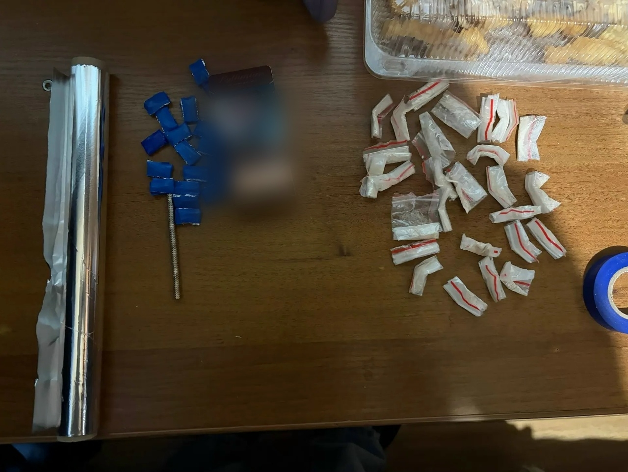 При обыске в жилище супругов полицейские изъяли ещё 45 свёртков с предположительно наркотическим веществом, а также электронные весы и ZIP-пакеты.
