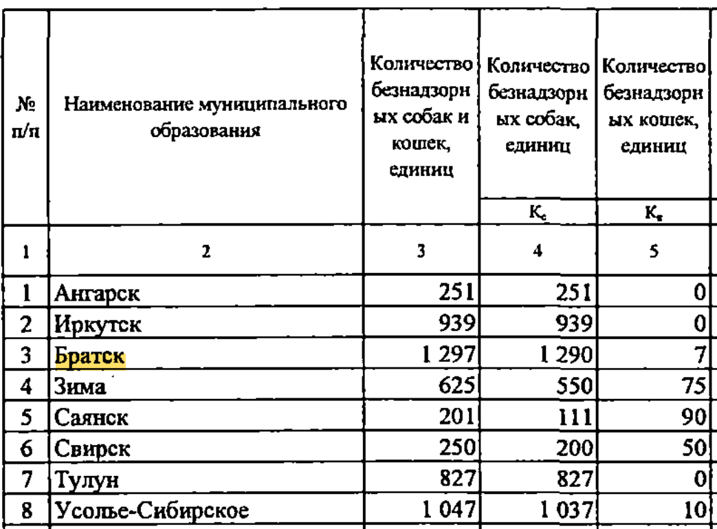 В расчёте распределения средств, которые планируется выделить городам и районам из областного бюджета на мероприятия по обращению с бездомными собаками и кошками, указывается, что в Братске обитает 1290 безнадзорных собак и 7 бездомных кошек. Годом ранее в аналогичном проекте закона о бюджете специалисты Службы ветеринарии указывали, что в Братске обитает 1115 бездомных собак и ни одной кошки. Таким образом, по данным областного ведомства, число бездомных собак в Братске за год увеличилось на 175 особей.