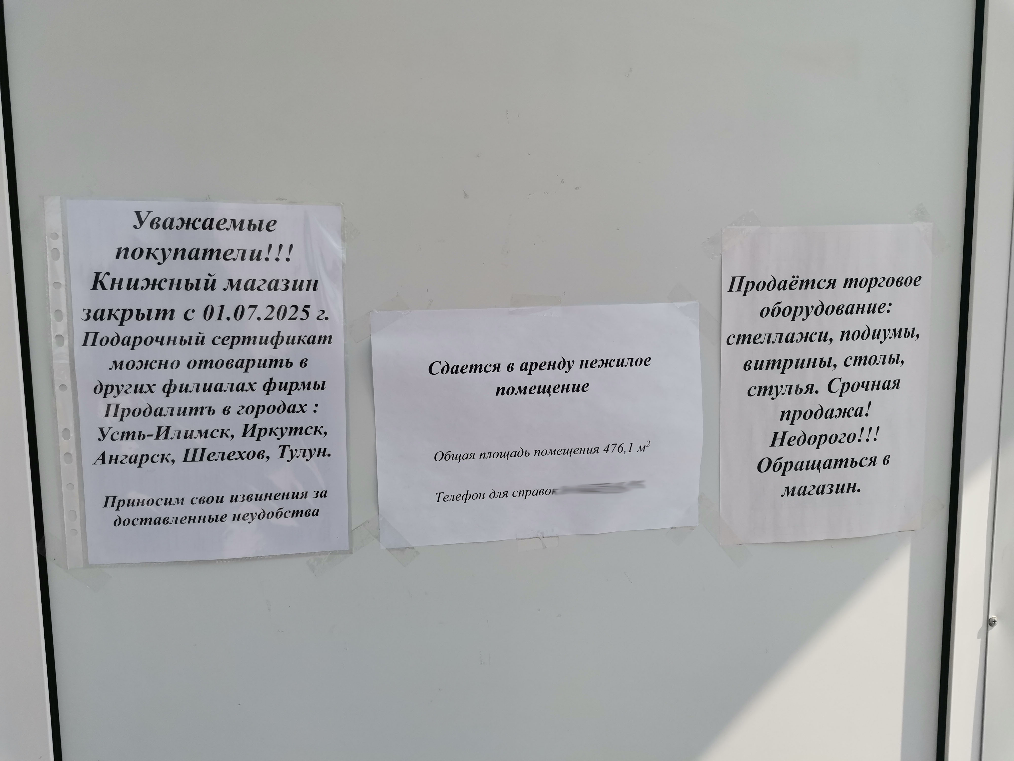 В Братске закрылись последние магазины межрегиональной книжной сети «Продалит». Последний из них перестал работать 1 июля в жилом районе Энергетик. Соответствующее объявление висит на закрытых дверях магазина. Об этом сообщает информационное агентство «ТК Город».