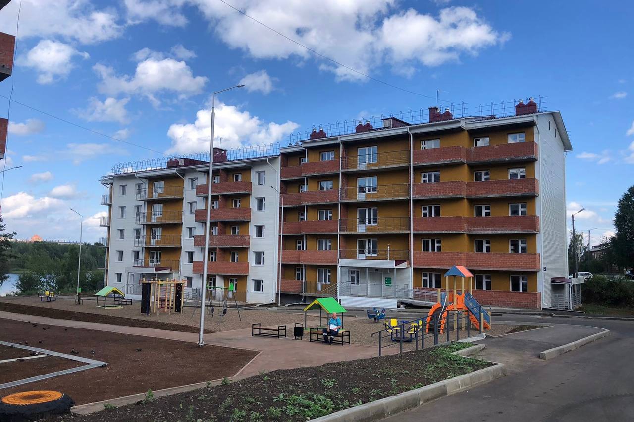В трех пятиэтажных блок-секциях находиться 161 квартира для переселенцев. В них заедут более 360 человек. Жилье для переселенцев сдадут в чистовой отделке. Рядом с домами уже благоустроена территория: проезды заасфальтированы, детские площадки установлены.
