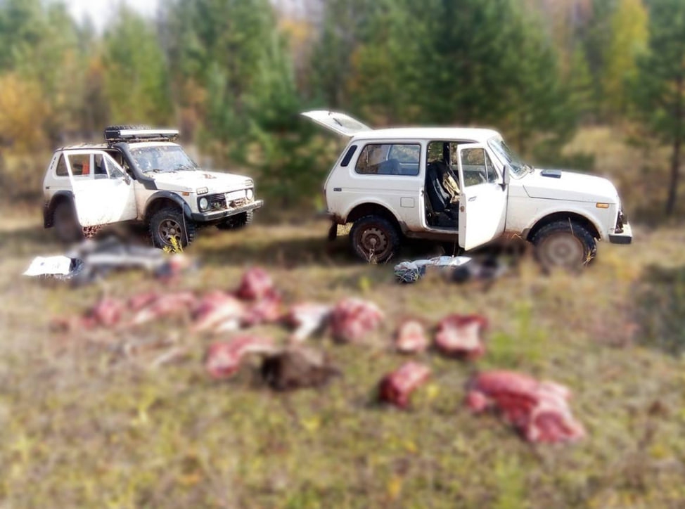 Судя по всему, задержали браконьеров с поличным. По словам инспекторов, у мужчин изъяли оружие и разделанную тушу изюбря.