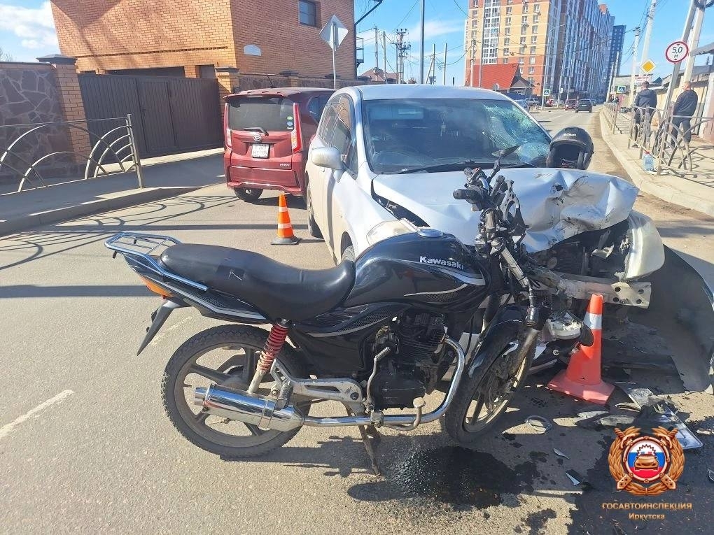 В Иркутском районе днём в субботу, 26 апреля, произошло дорожно-транспортное происшествие с участием несовершеннолетнего мотоциклиста. Авария зарегистрирована в рабочем поселке Маркова, где 14-летний подросток на мотоцикле «Кавасаки» столкнулся с легковым автомобилем «Ниссан Тиида».