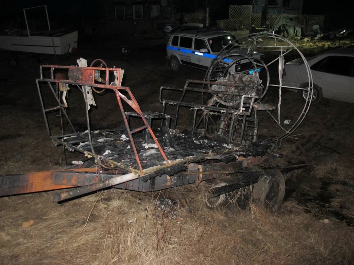 В ходе работы с заявителем полицейские выяснили, что в результате затяжного конфликта с бывшей сожительницей женщина решила поджечь его моторную лодку. В результате чего огонь перекинулся на её дом и уничтожил полностью и судно и жильё. Владелец оценил ущерб за сожжённую лодку в 1 миллион рублей. По данному факту возбуждено уголовное дело по части 2 статьи 167 УК РФ ("Умышленное уничтожение или повреждение имущества путем поджога").