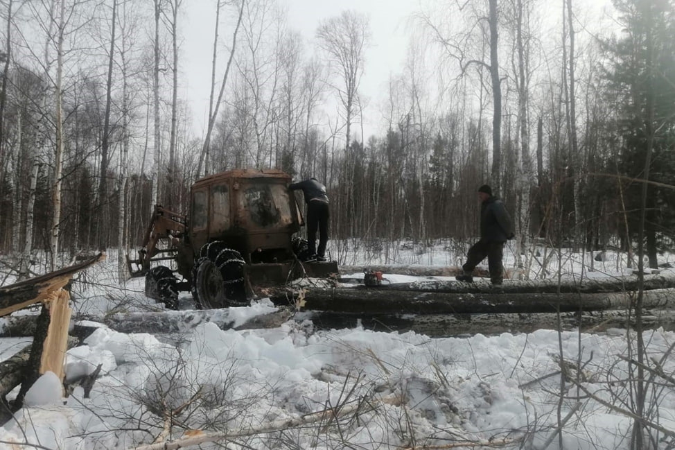На месте преступления были задержаны двое местных жителей, которые, используя трактор и бензопилу, незаконно спилили 102 осины.