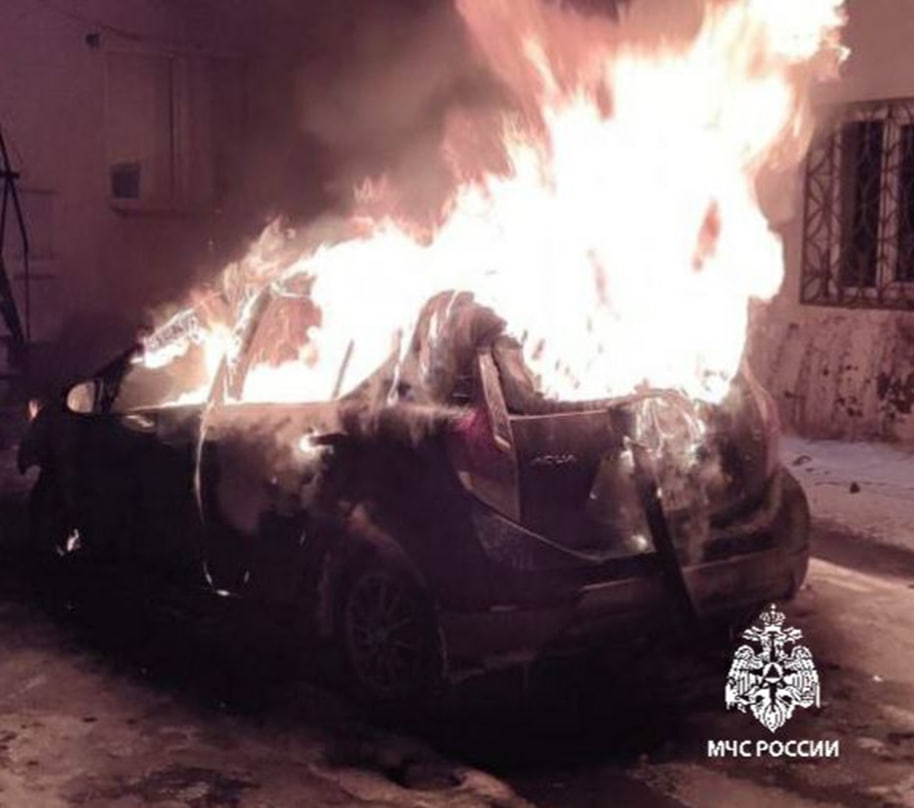 Как рассказали в пресс-службе МЧС по Иркутской области, возгорание автомобиля Тойота Аква произошло из-за короткого замыкания во время прогрева: