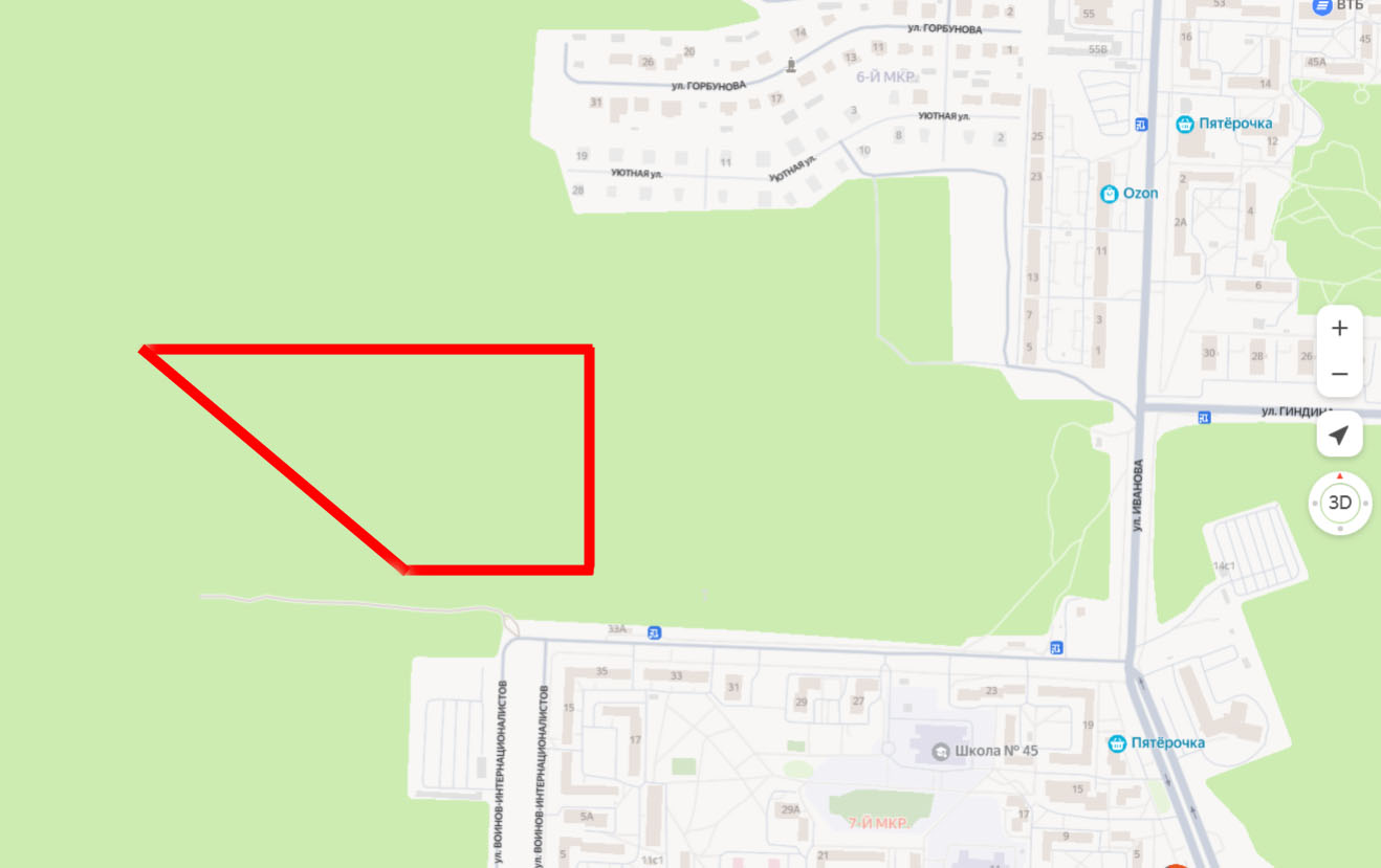 Как сообщалось ранее, новый микрорайон может появиться севернее пересечения улицы Воинов-Интернационалистов с улицей Олимпийской. Общая площадь территории под комплексную застройку составляет 86,3 тысячи квадратных метров. Сейчас на месте будущего строительства находится лес. В ближайшие годы здесь могут появиться жилые дома (в том числе многоквартирные), а также социальные и коммерческие объекты.