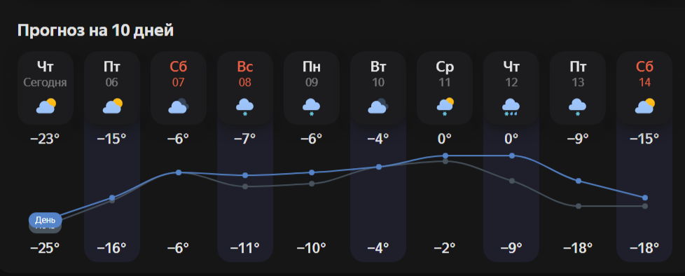 Скриншот с сервиса "Яндекс.Погода" (прогноз для Братска)